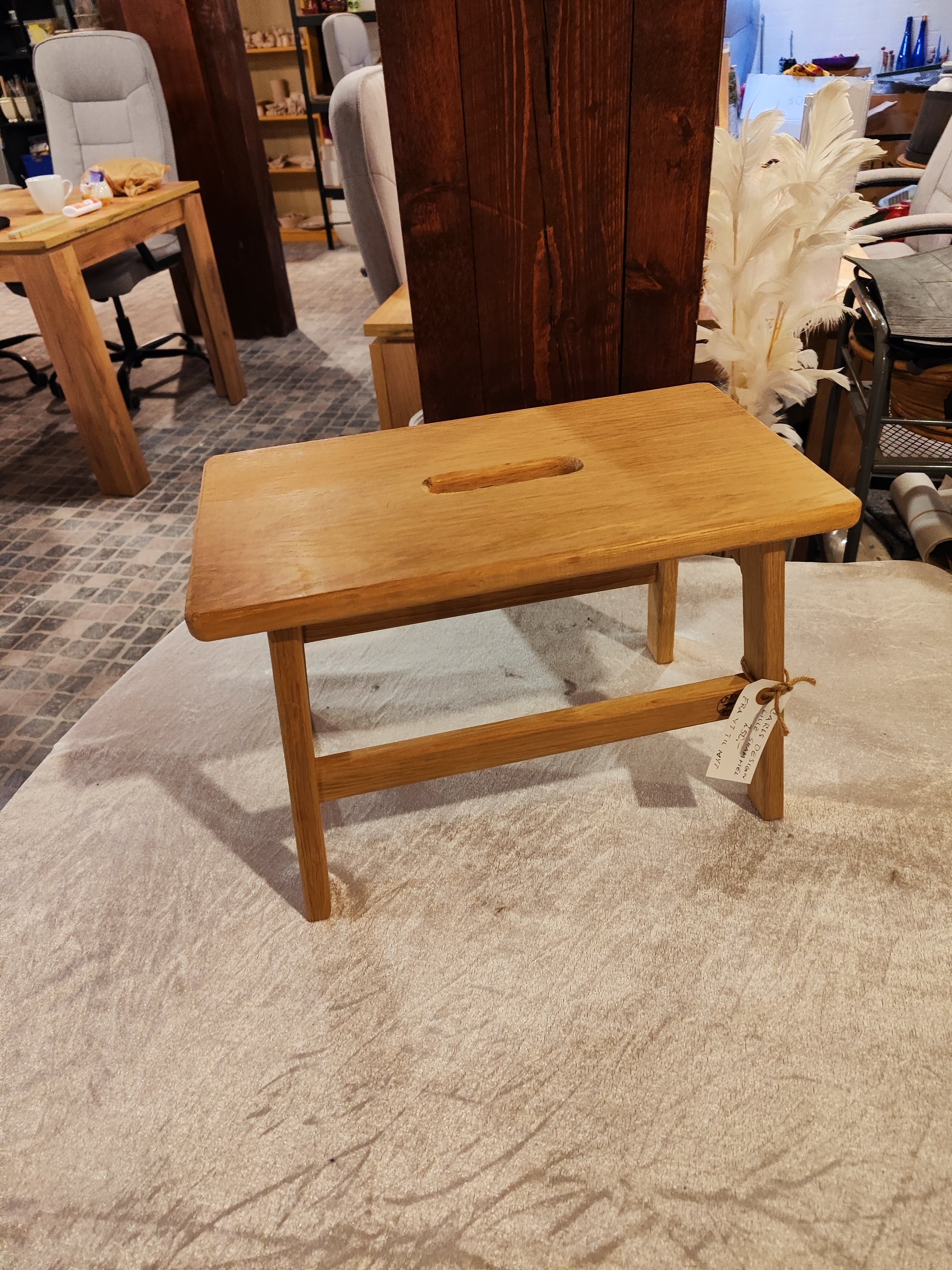Skammel i genbrugsegetræ med et trin. Højde 26cm